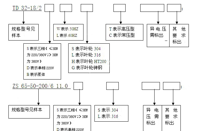 為明確標注泵的各種配置要求,在型號后用字母區分(最后兩位空格內容在水泵銘牌及合格證上不注),其字母含義說明如下: